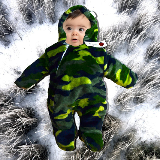 Baby Snowsuit | Faux Fur Hooded Snow Suit | Pramsuit | Unisex | Green Camp | Available in 6 sizes | 0-18M | 17I | Broggs®