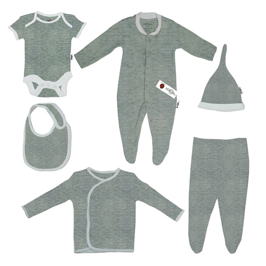 Baby Set | 100% Cotton | 6-Pieces | Hat | Bib | Jacket | Sleepsuit | Bodysuit | Leggings | Age Newborn – 6 Months | Colour Grey Marl | Broggs®