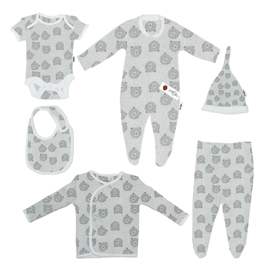 Baby Set | 100% Cotton | 6-Pieces | Hat | Bib | Jacket | Sleepsuit | Bodysuit | Leggings | Age Newborn – 6 Months | Colour Grey Bear | Broggs®