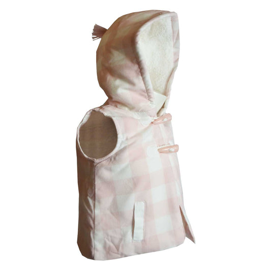 Girls Hooded Gilet | Pink and White Check | Faux Fur Lining | 9-24 Months