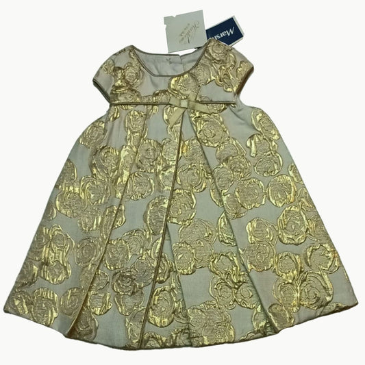 Girls Gold Floral Embossed Dress | Formal | Occasion Wear | Age 3 months – 2 Years