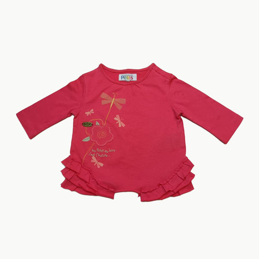 Girls Pink Top | Printed Design | Frills | 0-4 Years